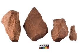 | Description / विवरण | There are n-4 of utilized flake cores. There are multidirectional irregular dominant scar pattern on both dorsal and ventral face of the cores. |