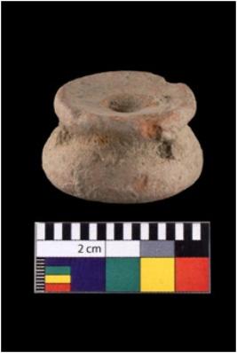 | Description / विवरण | Ear stud made up from Terracotta.It is parrtly broken with concave pully in shaped. It has solid straight body with slightly raised circular end.s |