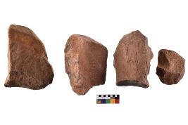 | Description / विवरण | There are n-4 of utilized flake cores. There are multidirectional irregular dominant scar pattern on both dorsal and ventral face of the cores. |