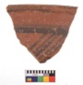 | Description / विवरण | Specimen of black on red ware with decorative geometric Linear Pattern painting. |