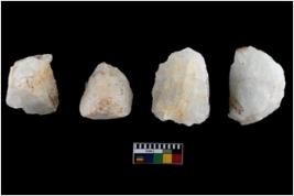 | Description / विवरण | A specimen of a fluted core having many impressions of fluted blades on it. |