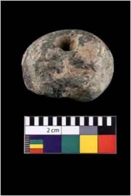 | Description / विवरण | Partly broken short barrel circular stone bead. |