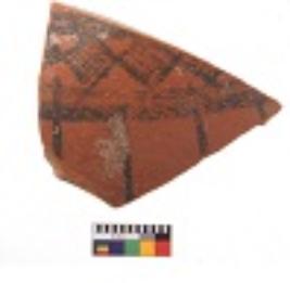 | Description / विवरण | Specimen of black on red ware with decorative geometric Diamond set broad horizontal bands painting. |