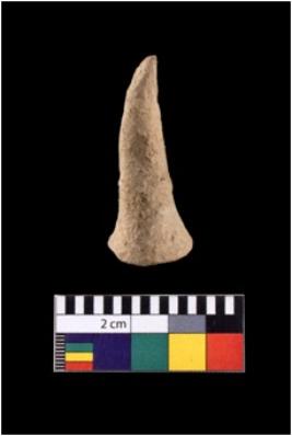 | Description / विवरण | A partially broken specimen of a terracotta gamesman with truncated ends. The base of the this object is flat and it s flares slightly more than the apex. |