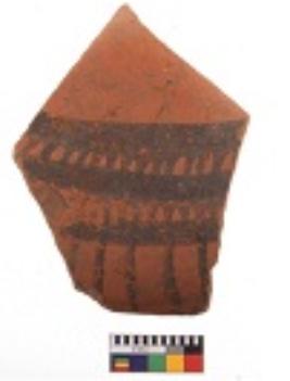 | Description / विवरण | Specimen of black on red ware with decorative geometric painting. |