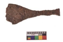 | Description / विवरण | A slightly corroded adze with broken working edge. |