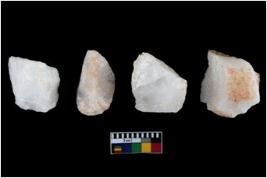 | Description / विवरण | A specimen of a fluted core having many impressions of fluted blades on it. |