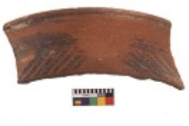 | Description / विवरण | Specimen of black on red ware with decorative geometric Linear Pattern painting. |