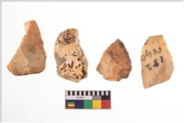 | Description / विवरण | Four flakes; most of them are tapering at one end with few having sharp edges. |