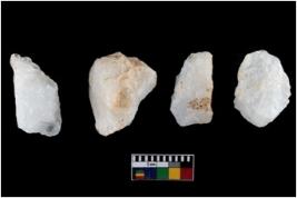 | Description / विवरण | A specimen of a fluted core having many impressions of fluted blades on it. |