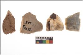 | Description / विवरण | Four worked flakes, some are uneven whereas some are tapering at one end. Most of them are having sharp edges. |