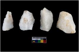 | Description / विवरण | A specimen of a fluted core having many impressions of fluted blades on it. |