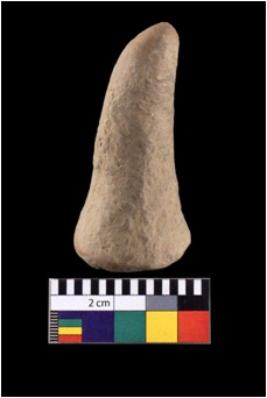 | Description / विवरण | A partailly broken specimen of a terracotta gamesman with truncated ends. The base of the this object is falt and it s flares slightly more than the apex. |