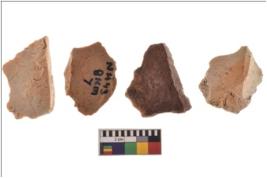 | Description / विवरण | Four worked utilised flakes with sharp edges. Most of them are tapering at one end. |