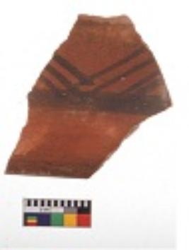 | Description / विवरण | Specimen of black on red ware with decorative geometric Linear Pattern painting. |