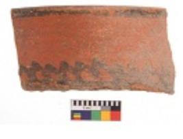 | Description / विवरण | Specimen of black on red ware with decorative geometric painting. |