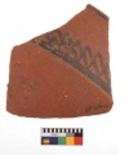 | Description / विवरण | Specimen of black on red ware with decorative geometric painting. |