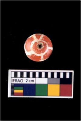 | Description / विवरण | Complete oblate shape bead with a white net pattern orange in color. |