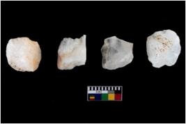 | Description / विवरण | A specimen of a fluted core having many impressions of fluted blades on it. |