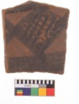 | Description / विवरण | Specimen of black on red ware with decorative geometric Diamond set broad horizontal bands painting. |