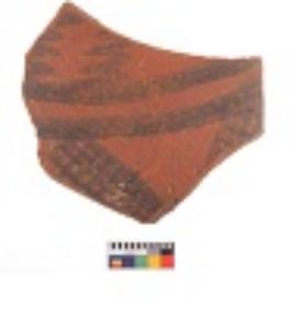 | Description / विवरण | Specimen of black on red ware with decorative geometric Diamond set broad horizontal bands painting. |