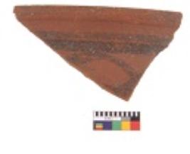 | Description / विवरण | Specimen of black on red ware with decorative geometric Linear Pattern painting. |