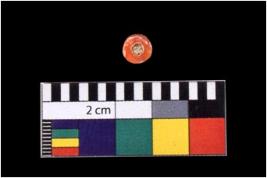 | Description / विवरण | Complete tubular shape with three white bonds etched, orange in color. |