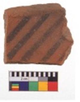 | Description / विवरण | Specimen of black on red ware with decorative black pigment. |