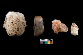 | Description / विवरण | There are n-4 of intact cores. Out of them 2 are made up Chalcedony, 1 is made up of Agate and 1 is made up of Chert.There are multi directional irregular dominant scar pattern on both dorsal and ventral face of the cores. |