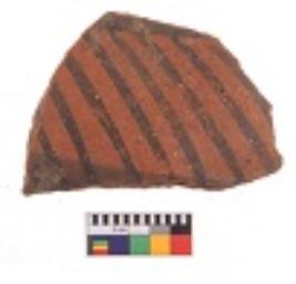 | Description / विवरण | Specimen of black on red ware with decorative geometric Linear Pattern painting. |