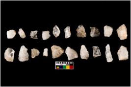 | Description / विवरण | Specimen of flakes tool with prominent flaking marks. Some are pointed and tapering at one end. |