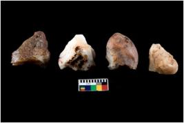 | Description / विवरण | There are n-4 of intact cores. Out of them 2 are made up Chalcedony and 2 are made up of Chert.There are multi directional irregular dominant scar pattern on both dorsal and ventral face of the cores. |