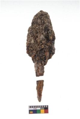 | Description / विवरण | A Partially Broken specimen of iron made arrow head with a broken tang with a possibly rectangular section and the blade is leaf shaped body with bi - convex section . At present it his heavily rusted |