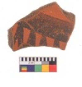 | Description / विवरण | Specimen of black on red ware with decorative geometric painting. |