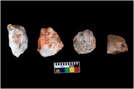 | Description / विवरण | There are n-4 of intact cores. Out of them 3 are made up Chert and 1 is made up of Chalcedony.There are multi directional irregular dominant scar pattern on both dorsal and ventral face of the cores. |