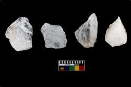| Description / विवरण | A specimen of a fluted core having many impressions of fluted blades on it. |
