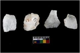 | Description / विवरण | A specimen of a fluted core having several broad fluted marks indicating the detached blades from it |