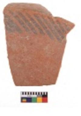 | Description / विवरण | Specimen of black on red ware with decorative black pigment. |