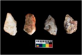 | Description / विवरण | There are n-4 of intact cores. Out of them 1 is made up Chalcedony and 3 are made up of Chert.There are multi directional irregular dominant scar pattern on both dorsal and ventral face of the cores. |