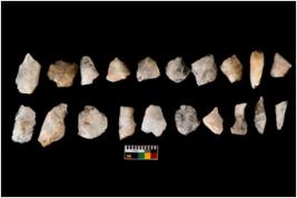 | Description / विवरण | Specimen of flakes tool with prominent flaking marks. Some are pointed and tapering at one end. |