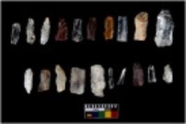 | Description / विवरण | There are n-20 of microliths, among them 12 are quartz, and 8 are of chert. Some of them are partially broken. They show variation in colour, size and shape. Some of them are blunted back blades, points, triangles, trapezes, crescent and truncated blades. |