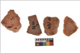 | Description / विवरण | Four worked flakes with sharp edges. Some of them are tapering at one end. |