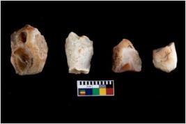 | Description / विवरण | There are n-4 of intact cores. Out of them 1 is made up Chalcedony and 3 are made up of Chert.There are multi directional irregular dominant scar pattern on both dorsal and ventral face of the cores. |