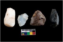 | Description / विवरण | There are n-4 of intact cores. Out of them 1 is made up Chalcedony and 3 are made up of Chert.There are multi directional irregular dominant scar pattern on both dorsal and ventral face of the cores. |