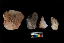 | Description / विवरण | There are n-4 of intact cores. Out of them 3 are made up Chalcedony and 1 is made up of Chert.There are multidirectional irregular dominant scar pattern on both dorsal and ventral face of the cores. |