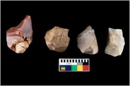| Description / विवरण | There are n-4 of intact cores. Out of them 2 are made up Chalcedony and 2 are made up of Chert.There are multi directional irregular dominant scar pattern on both dorsal and ventral face of the cores. |