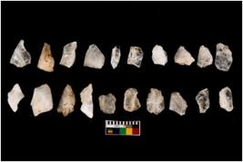 | Description / विवरण | Specimen of flakes tool with prominent flaking marks. Some are pointed and tapering at one end. |