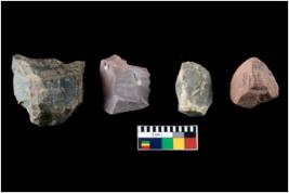 | Description / विवरण | There are n-4 of intact cores. Out of them 1 is made up Chalcedony and 3 are made up of Chert.There are multi directional irregular dominant scar pattern on both dorsal and ventral face of the cores. |