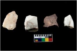 | Description / विवरण | There are n-4 of intact cores. Out of them 3 are made up Chalcedony and 1 is made up of Chert.There are multi directional irregular dominant scar pattern on both dorsal and ventral face of the cores. |