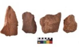 | Description / विवरण | There are n-4 of utilized flake cores. There are multidirectional irregular dominant scar pattern on both dorsal and ventral face of the cores. |